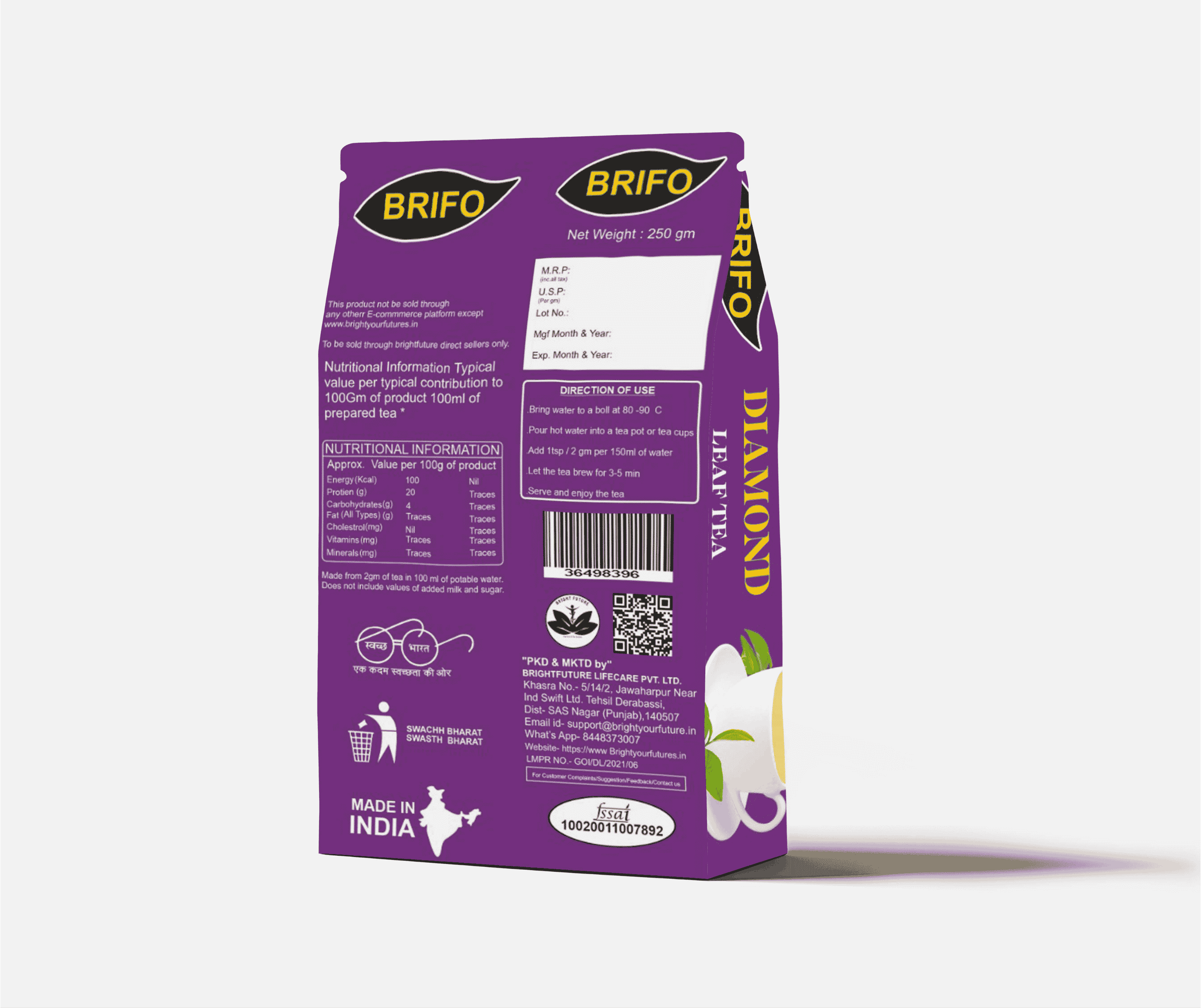 Brightfuture Diamond Leaf Tea is a premium-quality tea made from carefully selected tea leaves to give you a rich aroma, strong taste, and refreshing experience in every cup. Its perfect blend delivers a smooth flavour with natural freshness, making it an ideal choice for daily use.