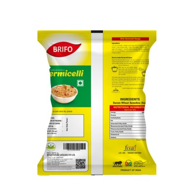 Brifo Vermicelli is a thin, delicate noodle used in both sweet and savory dishes. It cooks quickly and absorbs flavors well, making it perfect for recipes like upma, kheer, pulao, and stir-fried noodles. Its light texture and versatility allow it to blend smoothly with vegetables, spices, milk, or broth. Vermicelli adds softness and richness to meals, making it a popular ingredient in everyday cooking.