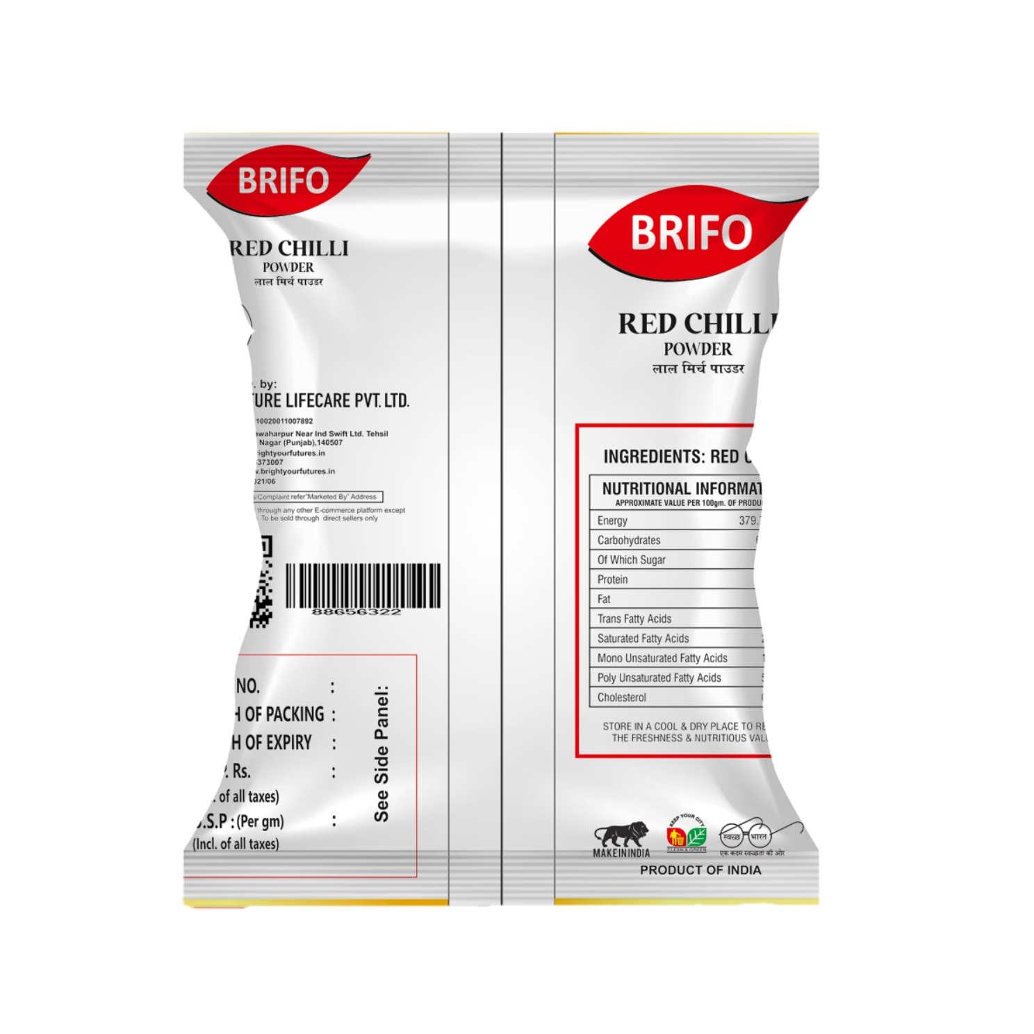 Brifo Red Chilly Powder, a pantry staple in almost all Indian dishes.
