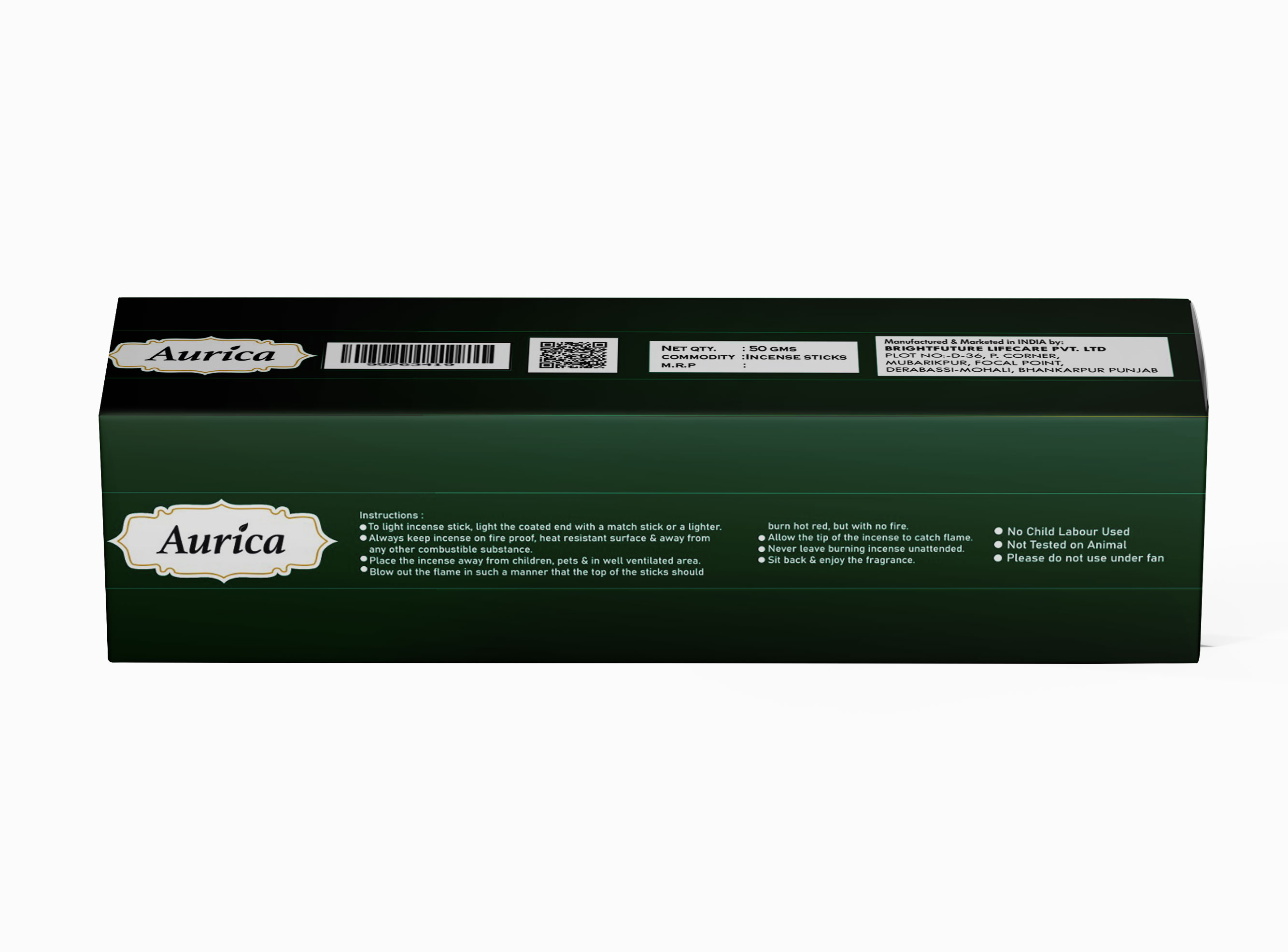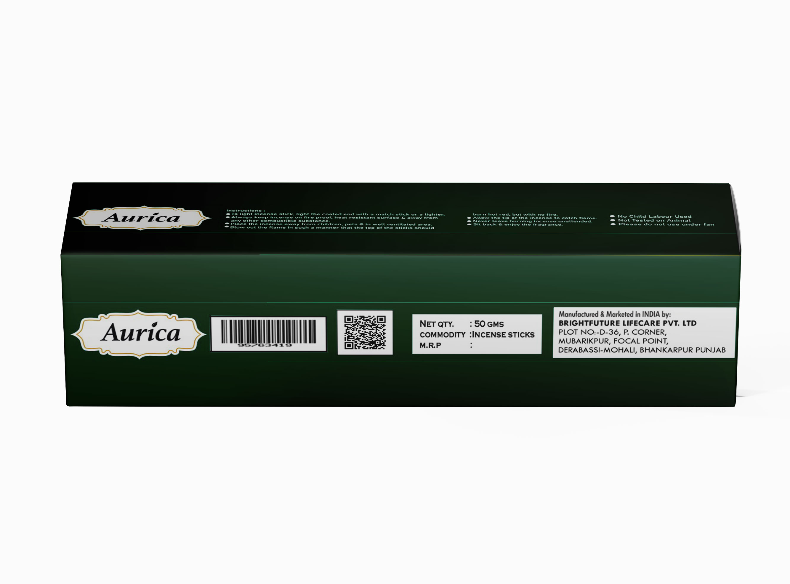 AURICA Agarbatti – Benefits: Creates a Peaceful Atmosphere Brings calmness and positivity to your space Pleasant Fragrance Spreads a refreshing and long-lasting aroma Ideal for पूजा & Meditation Perfect for daily पूजा, prayer, and yoga Reduces Stress & Tension Helps relax the mind and improve mood Purifies the Environment Helps remove bad odor and freshens the air Enhances Focus Supports better concentration during meditation Daily Use Friendly Suitable for home, office, and temples